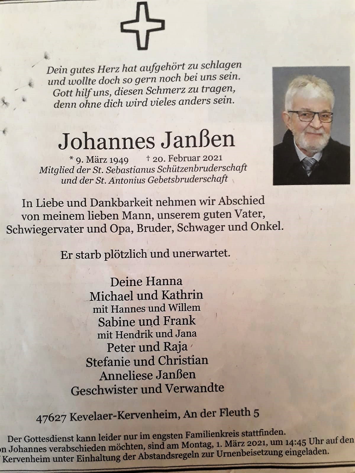 Johannes „Benno“ Janßen verstarb am 20.02.2021