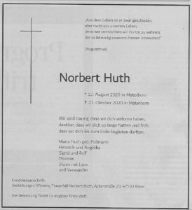 Im August des vergangenen Jahres konnten wir ihm seitens des Seniorenbeirates noch zu seinem 90. Geburtstag gratulieren.