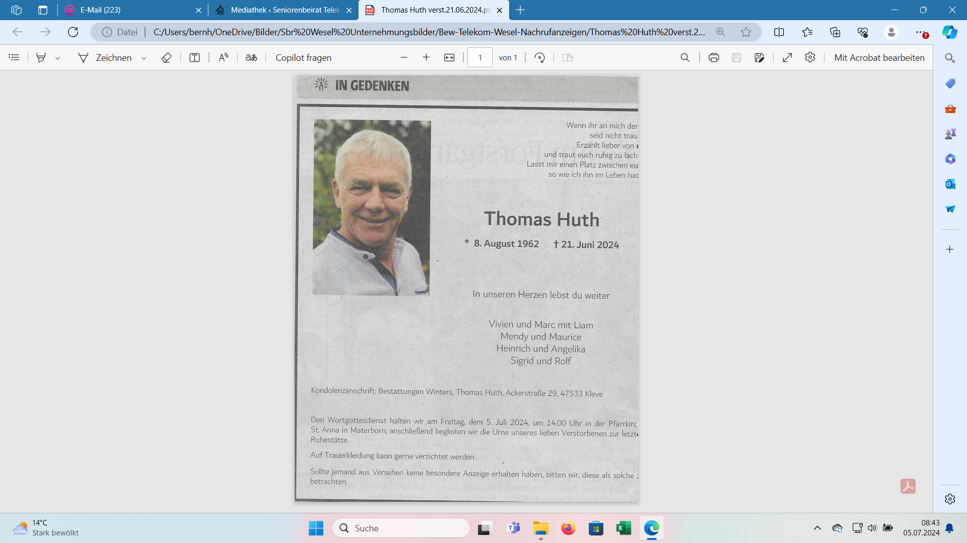Nachruf für Thomas Huth , verstorben am 21.06.2024